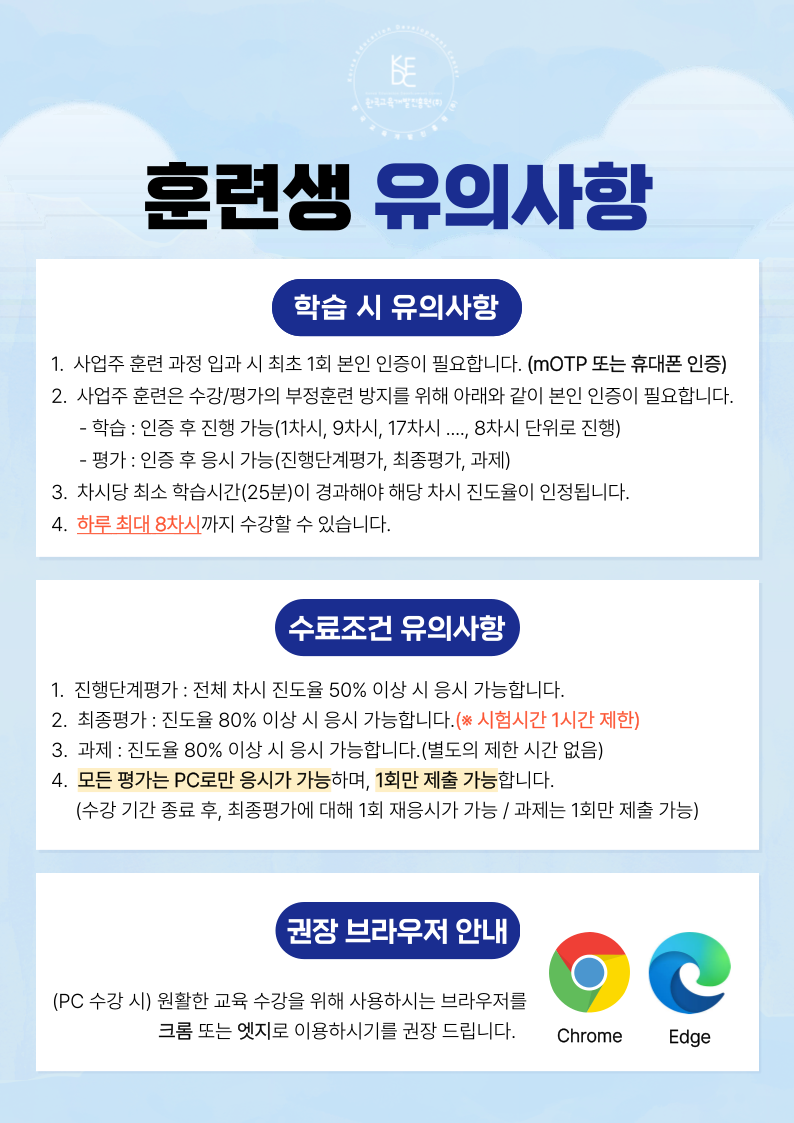 [공지] 훈련생 유의사항